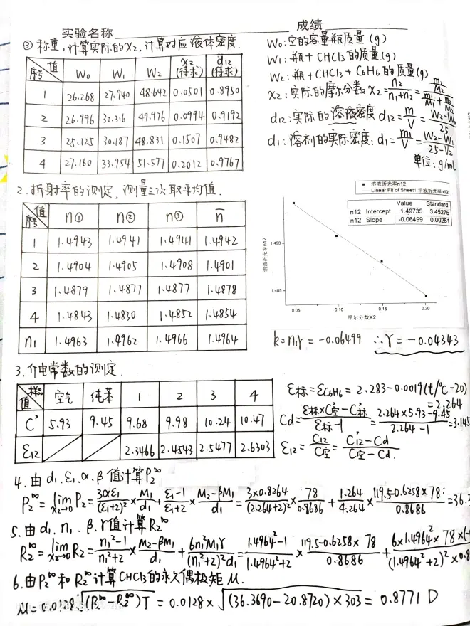 物化实验报告留存——溶液法测分子偶极矩的评论 (共