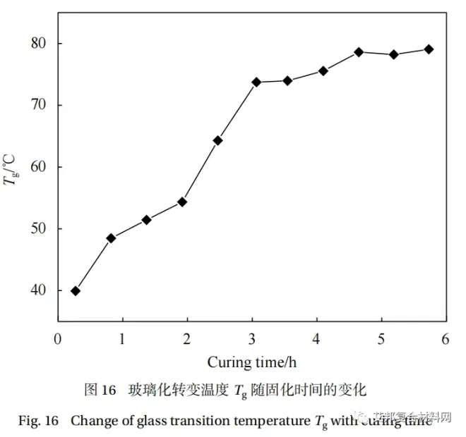 在叶片蒙皮粘接时,结构胶从混胶到涂胶与合模还需要一定的时间,因此结构胶的开放、施工和固化时间等工艺参数都会对合模粘接性能产生影响。如图 16 和图 17 所示,加热固化 3 h 后玻璃化转变温度 Tg 达到 74℃,随着固化时间的增加 Tg 稳定在 75~79℃,而拉剪强度也随着 Tg 的增加而趋于稳定。由于叶片合模时大多采用自动上胶机进行涂胶,而结构胶中含有用于提高强度及韧性的纤维填料,不仅增加结构胶的密度且在涂胶中经常会堵塞管路,同时叶片越大需要涂胶的面积越大,涂胶的时间也就越长,因此开发低密度、低成本、宽施工时间和高韧性快固化的结构胶是推动风电叶片提质增效降本的新趋势。
