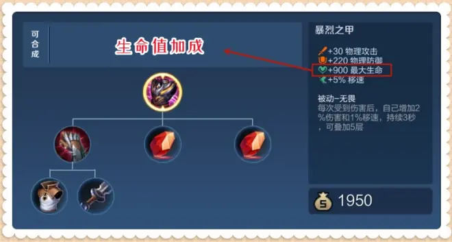在王者荣耀里,除了霸者重装外,血量加成最多的防御装也只有1200(不死鸟之眼和不祥征兆),其它的大多只有1000点最大生命值加成(像是暴烈之甲只有900点,冰痕之握更是只有500点),和它们一对比,铸梦-破空的800点生命值加成真的不少了。