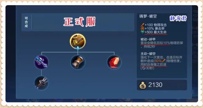铸梦-破空在抢先服的售价是2130g,和正式服的价格一样,在这个基础上,抛开其它所有的加强,光是最大生命值的调整就为铸梦-破空增加了300g的收益。