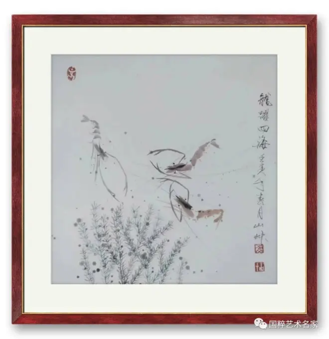 袁伟雄先生突破传统的画法,用最美的肢体语言和舞蹈的动感弦律,表现了虾的生动寓意,有虾钳携牵,相互照应,有戏嬉冲浪,有随波逐流,有情系浪中,有群虾弄潮,有舒展,曲弯,有前呼后应,你追我赶,生动极现,各种姿态,有嫦娥奔月,水袖飘逸,有穆桂英闯关的英勇洒脱,刚柔兼备,以人性化最美的肢体语言,以舞蹈的动感及弦律的节奏,表现画面的精、气、神,画出了虾的生命精髓和灵魂。