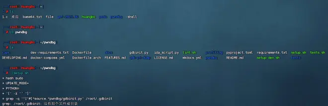 ---在root用户目录,将其它插件注释:vim .gdbinit(使用的时候取消注释)