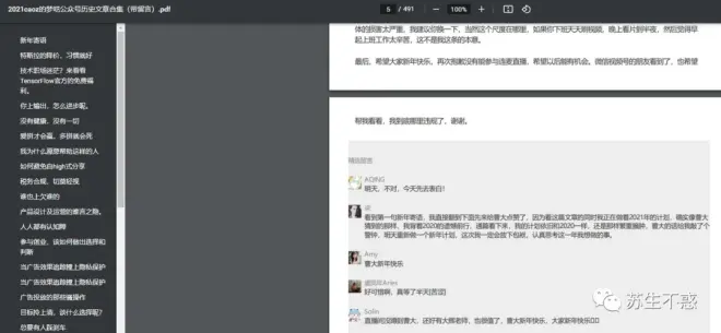 有2篇10万+阅读的文章:相信常识:漂亮50泡沫综述(20210228) 我常用的量化选股公式集锦(20210215)导出的文章带留言pdf文件,这样即使文章删了还能在本地看: