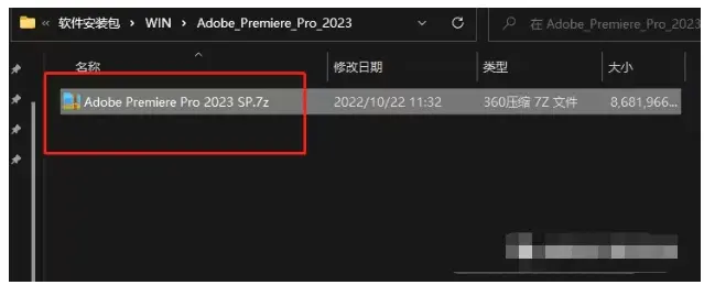 2.双击打开解压出来的Adobe Premiere Pro 2023 SP文件夹;