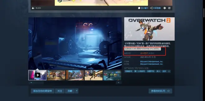 同时小编还注意到了《守望先锋2》现在在steam上的评价为多半差评,截至目前8000+评价,好评率仅27%。