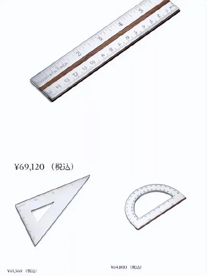 还有直尺、三角板、量角器,定价都在人民币3700-4200间不等。