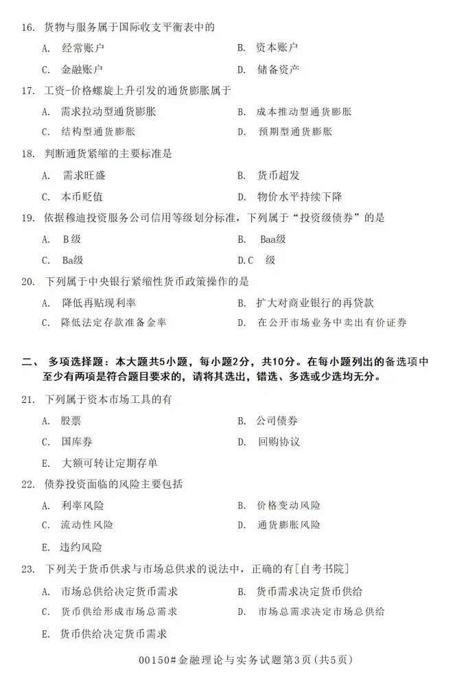 » 2023年4月自考《00150金融理论与实务》真题和评分参考
