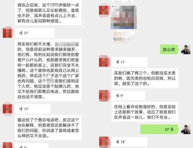 折腾了好几次发现依然没有解决唱歌效果的问题,对方开始质疑音响系统卖家了。