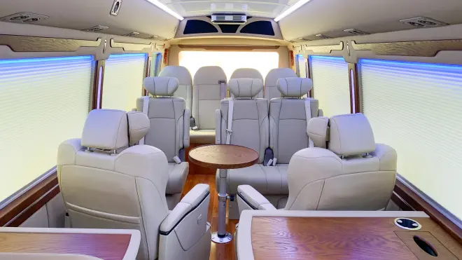 丰田考斯特14座2023款内饰改装后同样的价格改装厂比4s店的车出来更有内容,俗话说一分钱一分货,不论一味的去追求价格或者价低,一般会建议客户货比三家,择中考虑。