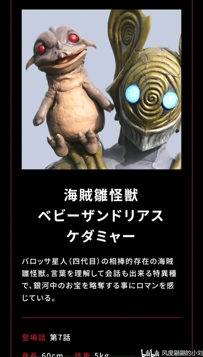 海盗外星人拥有掠夺各种武器并作为自己的武器使用的特性。是与泽塔奥特曼有着很深的因缘的种族,因为抢夺了金古桥军械库定制而被泽塔奥特曼所追踪。 在一代巴罗萨星人被光之国的奥特战士消灭时幸存下来的弟弟被泽塔追击到地球并偷走了金古桥军械库定制,在宇宙中被泽塔德尔塔天爪和赛文加追击,途中扔布鲁顿制造出次元漩涡攻击二人,却和泽塔一同被吸入其中,在泽塔解除变身后破坏了遥辉的泽塔升华器并抢走了泽塔收纳盒。 后来到特利迦的世界中,和初代巴罗萨星人一样,没有语言能力,通过搭档海贼雏怪兽 婴儿桑德里阿斯·凯达米亚进行语言翻译来对话,在寻找究兰的种子时遇到伊格·尼斯,和其互相炫耀各种抢得的宝物,后在伊格·尼斯抢走泽塔收纳盒后对其进行追赶。 之后发现并吃下了究兰的种子,以此巨大化,继续追击伊格·尼斯,后与特利迦展开战斗,利用考达依格theother的鲷鱼牵制对方,配合战神伽卢法斯的飞镖打击,令特利迦陷入苦战,随后泽塔加入战斗,被两人联手压制,最后在泽塔和特利迦发出的帝斯修姆利爪和哉佩利敖利爪冲击的合击下被消灭。 海贼雏怪兽婴儿桑德里阿斯·凯达米亚