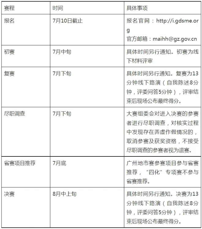 符合条件的参赛者可通过大赛官网http://i.gdsme.org 注册登记,报名参赛。参赛者应提交完整报名材料,并对所提交材料的真实性、准确性、合法性负责,未注册登记的参赛者不得参加大赛。