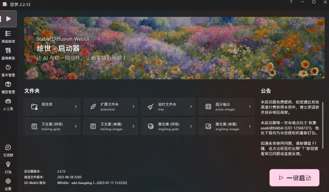 鱼子酱的AI绘画快速上手指南(2023年7月)—— [2] 启动器和webui基本界面元素