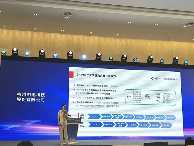 会上,朗迅科技黄庆红作为国家专精特新小巨人企业代表受邀分享经验与成果。中小企业是社会经济发展的生力军,专精特新企业是中小企业的“领头羊”。朗迅以建设国内一流、世界领先的国产化、产业化高端芯片测试专业服务商为目标,瞄准战略产业前沿,以自身强大的技术支持能力和工程导入能力,为全球集成电路企业提供先进芯片测试开发解决方案及全流程测试、人才生态综合服务。朗迅在做好自身经营工作的同时,持续发挥示范引领力,努力与各方共同构建赋能企业、产业、技术、教育革新升级的正向循环机制,提升产业科技创新和产业链供应链韧性。