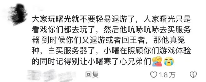 最后就像上面这位网友说的,也希望大家玩曙光不是图一个新鲜,而是真心喜欢它。不然就像网上说的那样:前任一哭,现任必输!