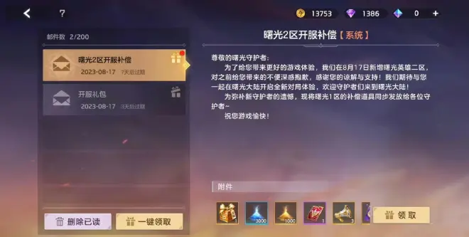 为此,曙光英雄官方也宣布对服务器进行紧急扩容。官方为了补偿玩家,直接表示:8月15日凌晨5点之前注册上线的玩家都能领取免费传说自选皮肤宝箱。