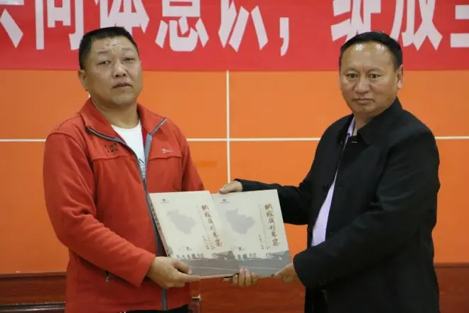 纳雍县摄影家协会党支部书记李靖松为全国光影助学工程六校区赠送纳雍县摄影家协会年鉴。