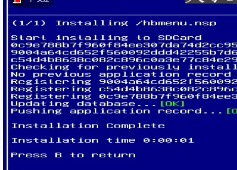 提示按B返回就完成安装了。不要没有AWOO就不会了,AWOO安装NSZ游戏会报错,我用同一款游戏文件亲测过。