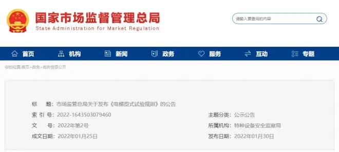 为完善电梯型式试验工作,市场监管总局对《电梯型式试验规则》(TSG T7007—2016,含1号修改单)进行了修订,形成《电梯型式试验规则》(TSG T7007—2022)(以下简称“规则”),2022年1月予批准发布,于2022年7月1日起施行。