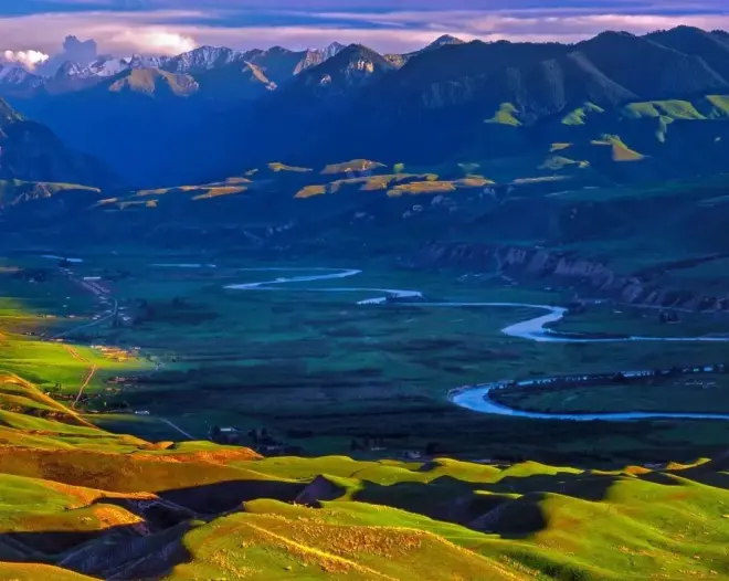 站在夏牧场的中央,环视夏牧场的辽阔,只见夏牧场满眼的绿。有的绿的发黄,淡淡的;有的绿的发青,浅浅的;恰普河的水绿的悠闲,在夏牧场的草原上蜿蜒西去。