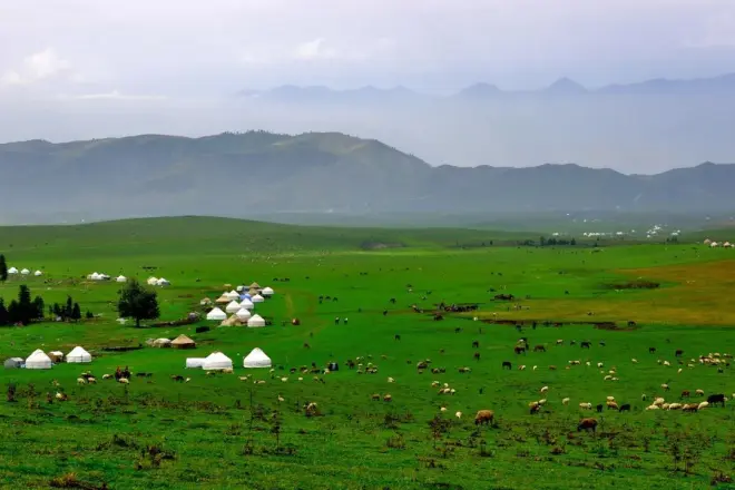 那拉提草原,世界四大河谷草原之一。相传成吉思汗西征的某年春季时,一支蒙古军队由天山深处向伊利进发,一路风雪使这支军队饥寒交迫、疲惫不堪。