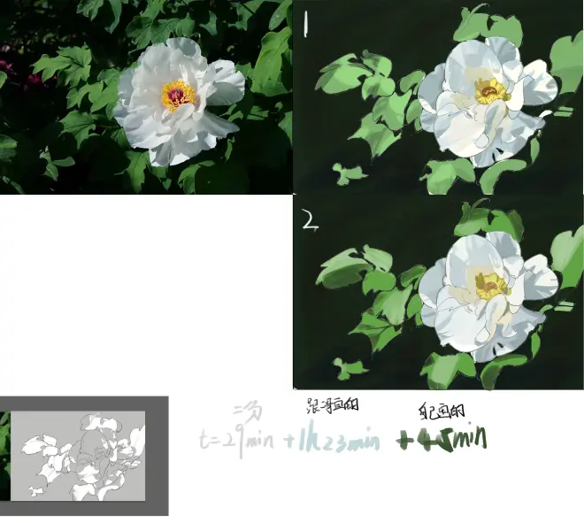 2h37min,用了二哥的线稿,第二遍用第一个的二分,做第二遍是在第二天了,感觉只是把步骤再熟悉了一遍。想问问二哥滤值那一步是怎么做的呢,想试着自己抄照片二分的时候不会做,就临摹二哥视频里画的了。另外就是,二哥的颜色过渡的好和谐呀,请问有什么方法吗?