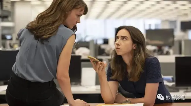佐伊·卡赞(Zoe Kazan)饰演的乔迪·坎特,她在家里要和孩子斗智斗勇,她家里的情况也有足够多的镜头表现。