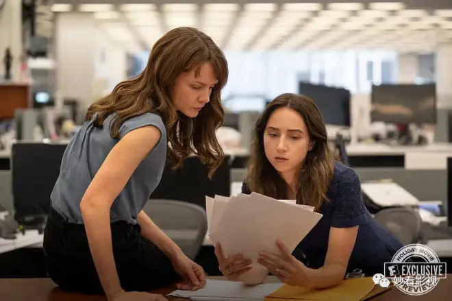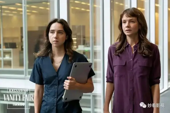 凯莉·穆里根(Carey Mulligan)饰演的梅根·托希,她在工作中尽显坚韧,但在生活中却很脆弱,她刚生完第一个孩子,还在和产后抑郁症作斗争。