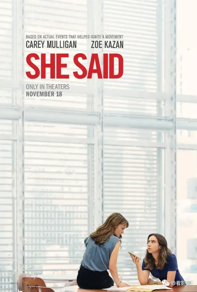 本片改编自《纽约时报》女记者乔迪·坎特(Jodi Kantor)和梅根·托希(Megan Twohey)著于 2019 年的同名书籍《她说:打破性骚扰的故事,帮助点燃了一场运动》(She Said: Breaking the Sexual Harassment Story That Helped Ignite a Movement),详细介绍了调查记者对哈维·韦恩斯坦(Harvey Weinstein)性侵女演员的调查,小心谨慎且克制。