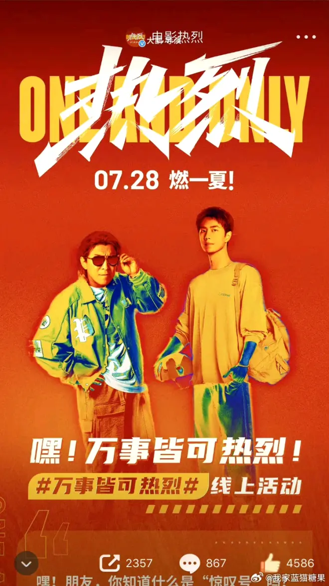 #电影热烈预售突破4000万# 以真心,赴热烈!#电影热烈# 点映预售票房破4000万!每个人心中的热烈都熠熠生辉,那就去热烈地热爱吧~ 7月23日14:00-16:00,7月24日-27日14:00-21:00全国点映,7月28日全国上映,预售现已全面开启!购票请戳: 中影:http://t.cn/A605J38C 淘票票:http://t.cn/A605J389 猫眼:http://t.cn/A605Je7B 万达:http://t.cn/A60