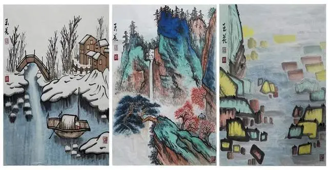 作品风格:工笔、写意、山水、泼墨泼彩山水、花鸟、人物古代仕女、书法创作;年画系列、油画系列、自画像古装系列、山水花鸟画系列、牡丹画系列、诗书画系列、扇面画系列、中国绣品画系列、中国瓷器画系列、书画长卷系列、丈二以上代表作系列。