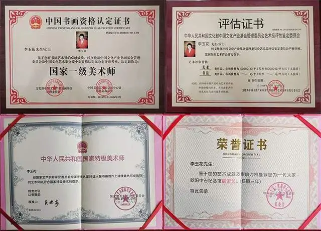 2019年CCTV传承经典著名书画家李玉花作品集:2019年应中华卫视邀请参与《大美中华》的现场录制;2019人民日报庆祝建国70周年艺术家纪录片;2020应中国互联网特邀终身艺术总监;2020中国通俗文艺研究会特邀艺术家;2021年冬做客央视访谈录《大山里飞出来的凤凰》;2021中国航天书画理事书法作品石刻到北京航天城;2022中国冬奥荣获俄罗斯文化骑士勋章;2022中国香港新文化紫荆勋章大湾区书画院常务副院长;2022中国作家库作家。2022庆祝中共二十大胜利召开荣获新文化领军人物荣誉勋章入编新征程领航者七大常委七大家;2022中国影响力文化人物入编商业文化杂志时代楷模国礼特刊;2022中国国礼形象大使艺术家;2022中国天眼国画参加苏富比拍卖、大国艺术瓷盘参加劳伦斯拍卖、国色天香参加香港国丰福德拍卖;2022全球文化艺术交流中心档案库艺术家。2023投资中国荣获亚太重点推荐艺术家;2023第95届奥斯卡奖项颁奖典礼金奖;2023中国新文化领航者三巨头艺术家;2023“春风杯”获奖艺术家;2023中央电视台《艺术传承》栏目组客座教授。