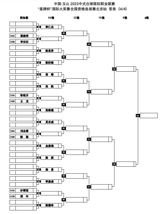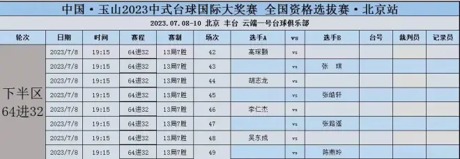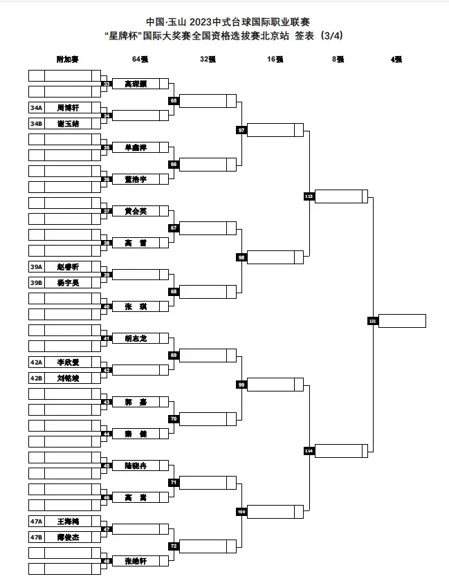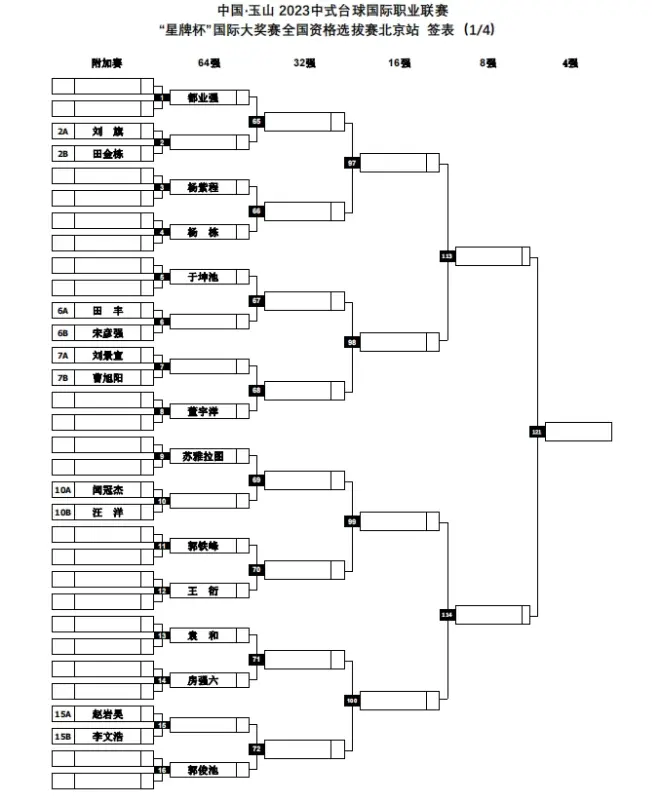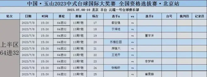 中国·玉山2023中式台球国际职业联赛“星牌杯”国际大奖赛全国资格选拔赛北京站签表出炉。