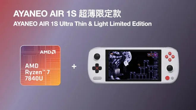 7 月 9 日,AYANEO 正式发布全新的超轻薄 OELD 7840U 掌机 AYANEO AIR 1S,为众多玩家献上突破传统 Windows 掌机的强大真掌机。