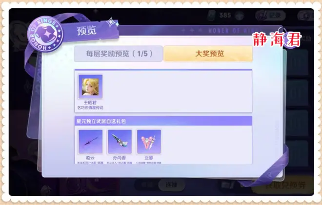 看起来是五件星元随机出,但实际上王昭君的乞巧织春肯定是只有第五层才可以出。