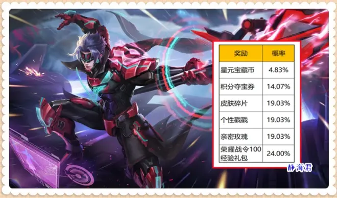 皮肤碎片、个性戳戳、亲密玫瑰的中奖概率是19.03%;