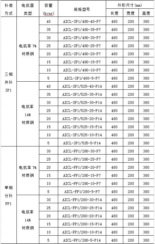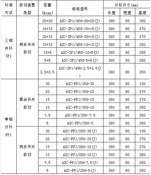 AZC系列智能电容器选型:
