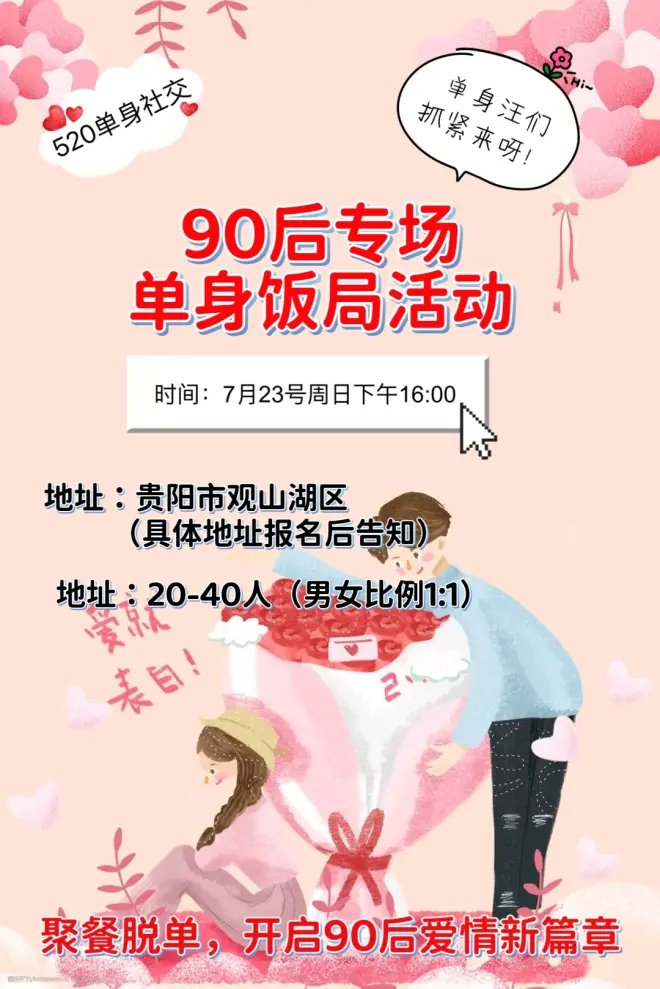【第46期活动报名】2023年7月23号 周日《90后专场单身饭局》年轻共进,爱情起航