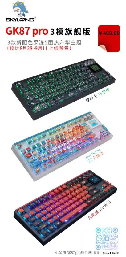 【8月28日】GK87 Pro 主题键盘 新一波预售 3款新配色果冻5面热升华主题款 469元