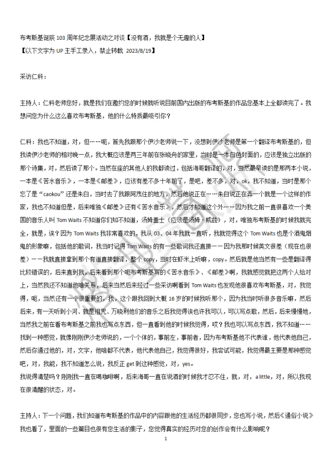 对谈 布考斯基 伊沙 仁科