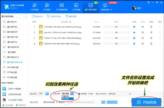 第四步 识别效果有识别优先和图文混排,根据需要来就选择即可,接下来就是点击开始转换,等待完成就可以查看啦。
