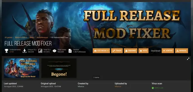然后要装一个Full Release Mod Fixer,可以在Nexus MOD网站上下载(装mod的应该都知道这网站吧);这是mod修复补丁,装了之后玩游戏的进程中不会总是报错闪退;