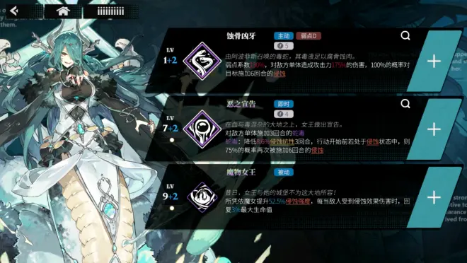 4.阿波菲斯:阿波菲斯二技能能减少侵蚀抗性,且每回合75%概率额外再挂一层侵蚀,三技能增加侵蚀强度需要优先升级