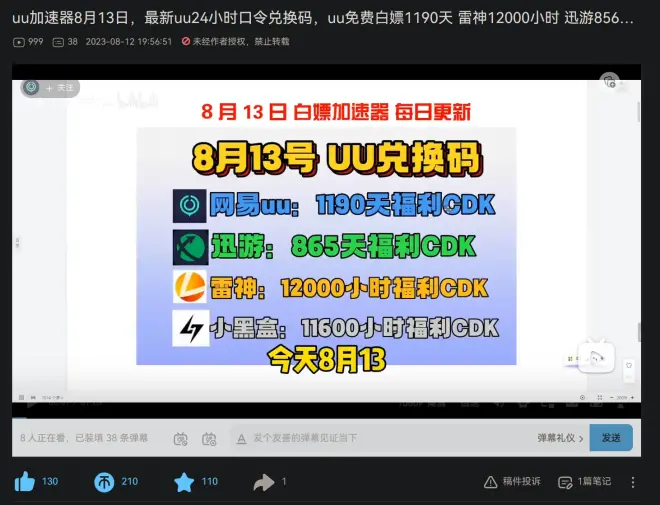 uu加速器8月13日,最新uu24小时口令兑换码,uu免费白嫖1190天 雷神1的评论 (共