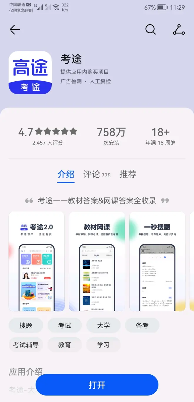 👉考途 强推!强推!强推! 小编大四刚考完研,全程都在用的搜题软件。命中率高达90%,特别适合理科生,课程覆盖范围广而深。 考途上拥有大多数高校的期末试题,对于找试卷困难的同学来说真是一大救命稻草。每道题都能搜到且配带解析!考途不但拥有各种考研真题,而且拥有四六级和考公真题。我们可以在上面模拟也可以做真题来检验自己对知识点的掌握情况。