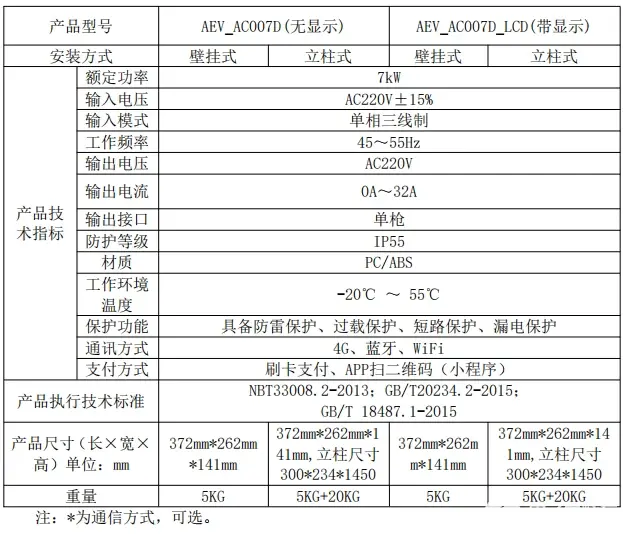 AEV-AC007D-LCD新能源汽车充电桩产品型号说明
