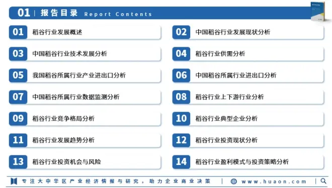 华经产业研究院研究团队使用桌面研究与定量调查、定性分析相结合的方式,全面客观的剖析稻谷行业发展的总体市场容量、产业链、竞争格局、经营特性、盈利能力和商业模式等。科学使用SCP模型、SWOT、PEST、回归分析、SPACE矩阵等研究模型与方法综合分析稻谷行业市场环境、产业政策、竞争格局、技术革新、市场风险、行业壁垒、机遇以及挑战等相关因素。根据稻谷行业的发展轨迹及实践经验,精心研究编制《2023-2028年中国稻谷行业市场全景评估及投资战略规划研究报告》,为企业、科研、投资机构等单位投资决策、战略规划、产业研究提供重要参考。