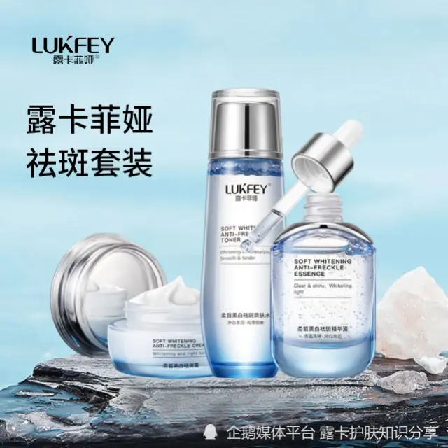 露卡菲娅祛斑套装含有爽肤水、精华液、祛斑霜三个单品,每个单品都有不同的作用,相互配合又能发挥出多维合一的效果,肤感是比较清爽的。