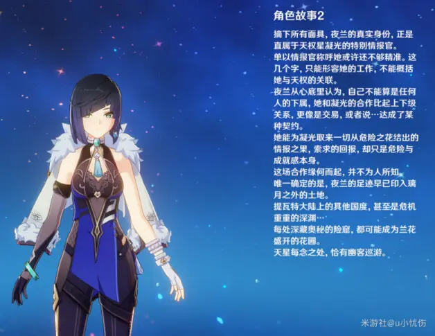 夜兰自称供职于总务司的神秘人士;却又是总务司名录里的「不存在之人」。