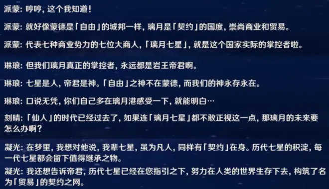 璃月七星或许只是七神的缩影,在帝君离去后肩负起『引导人类」的神圣职责。