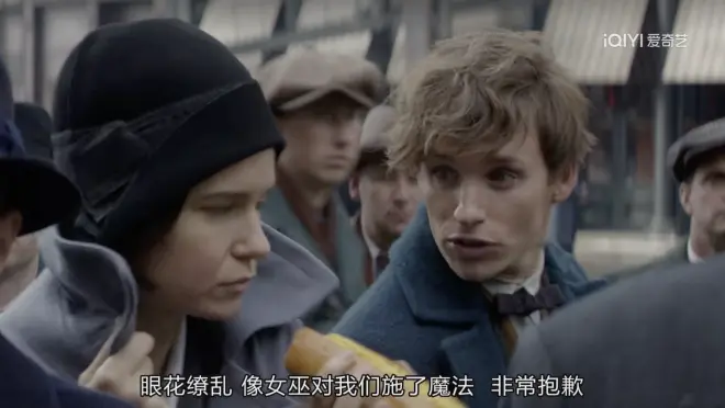 镜头转向蒂娜,她挤过人群,怀疑地盯着纽特。